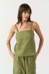- Cerrado en el centro de la espalda con detalle de una tabla del mismo lino